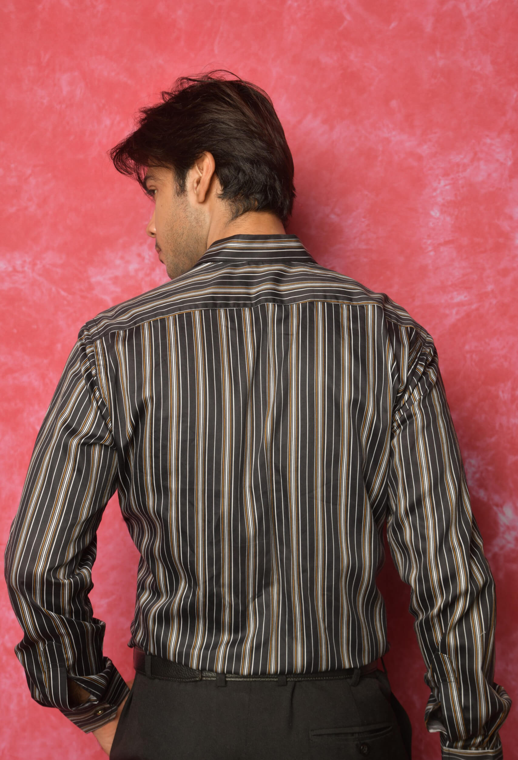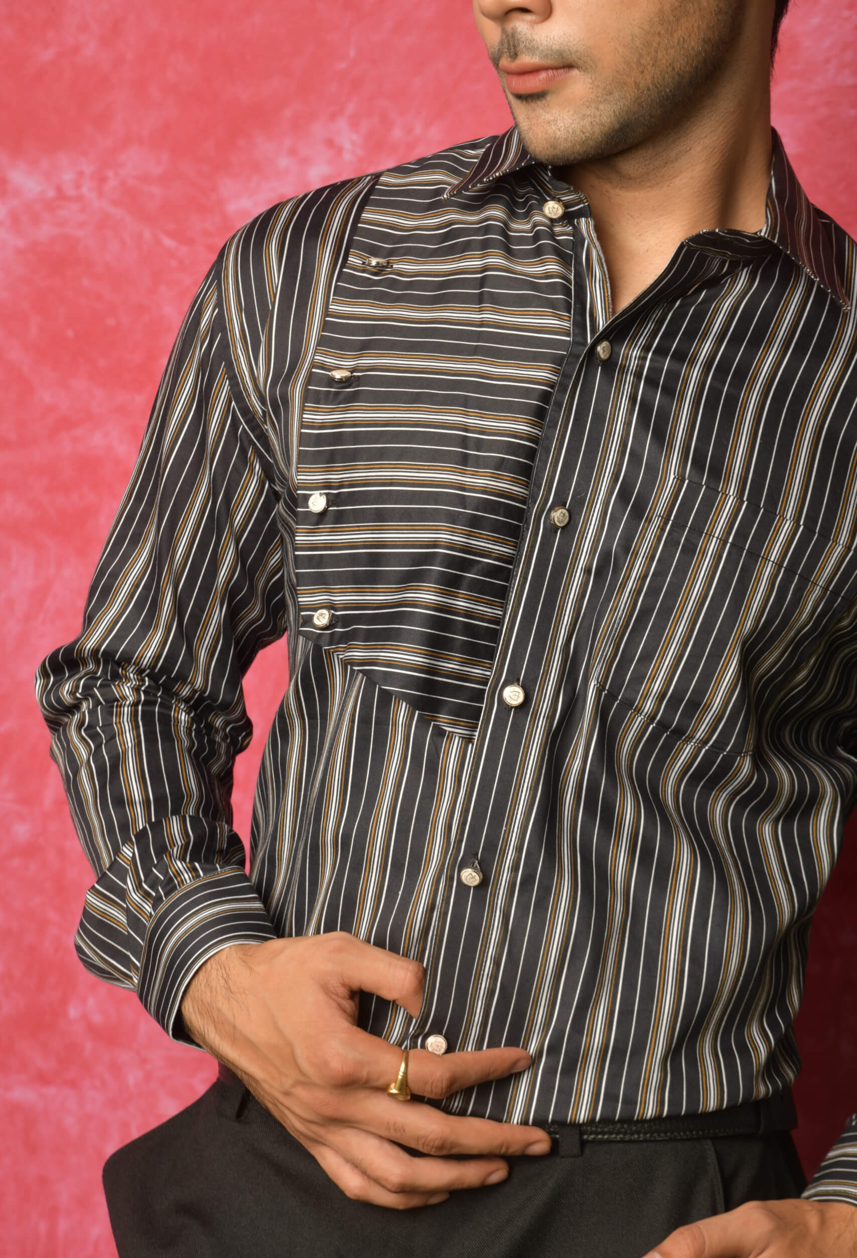 The Prints Shirt Edition- Wing collar shirt Enhanced with the stripe Print and classy buttons.